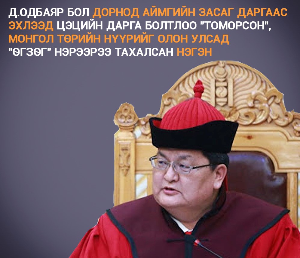 Үндсэн хуулийн цэцийн дарга асан Дорнодын Д.Одбаяр төрийн томчуудыг хормойдсоор байгаад Хонконгийн консулаар нэгэнтээ явчихсан. Ёс зүйг эрхэмлэдэг оронд бол улсаа дэлхийд шившиглэж байсан хүнийг хилийн дээс алхуулж, алба хашуулахгүй нь мэдээж. Ер нь төрийн алба ой санамжтай байх ёстой.