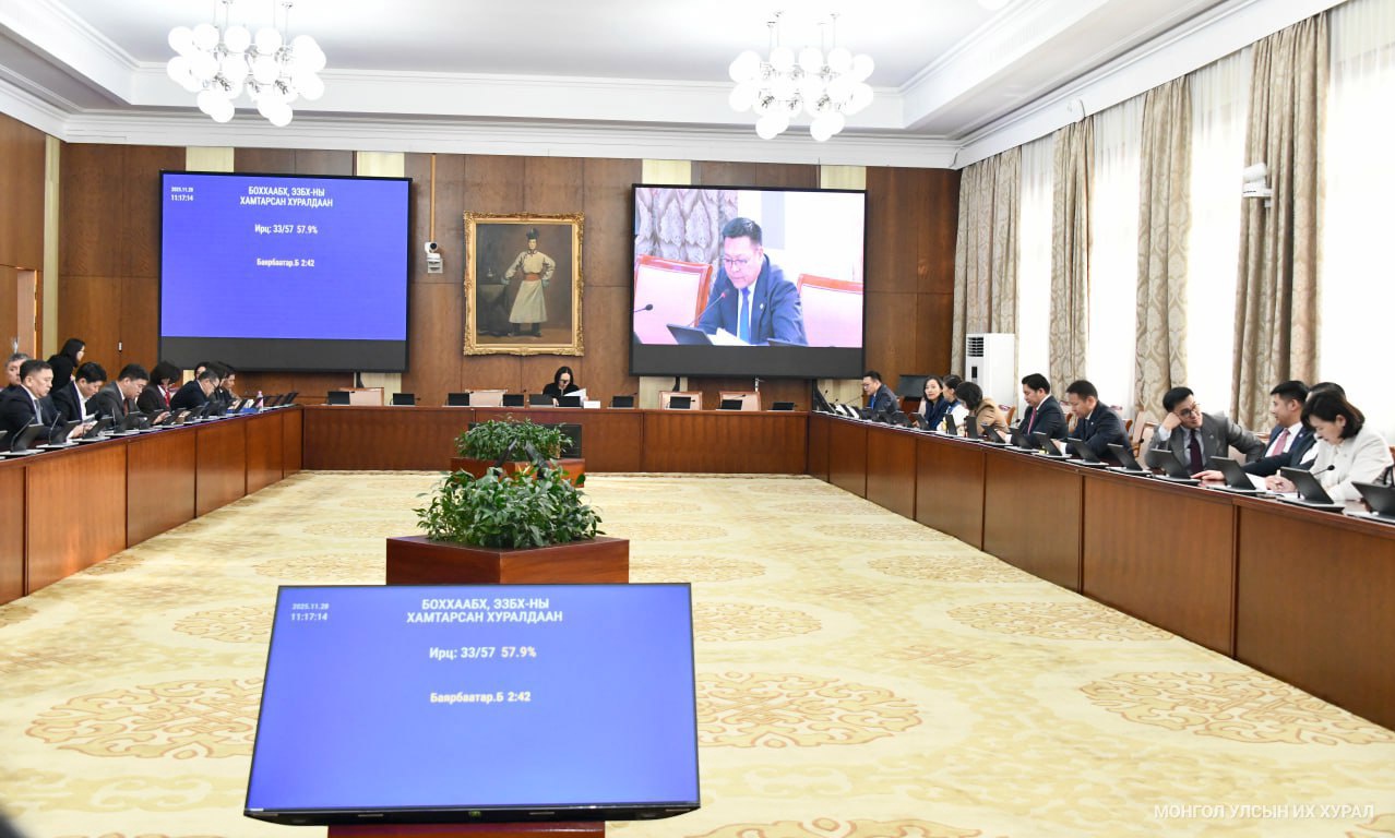 Улсын Их Хурлын Байгаль орчин, хүнс, хөдөө аж ахуйн болон Эдийн засгийн байнгын хороо өнөөдөр (2025.11.20) хамтарсан хуралдаж, “Халзан бүрэгтэй”-н орд газрын ашиглалт, байгаль орчинд үзүүлэх сөрөг нөлөөлөл, эрсдэлийг нарийвчлан судлах сэдвээр зохион байгуулсан ерөнхий хяналтын сонсголын тайланг сонслоо. Хуралдаан 29 гишүүн хүрэлцэн ирснээр 11 цаг 12 минутад 50.9 хувийн ирцтэйгээр эхлэв. Улсын Их Хурлын гишүүн Б.Жаргалан тус хамтарсан хуралдааныг даргалсан юм.