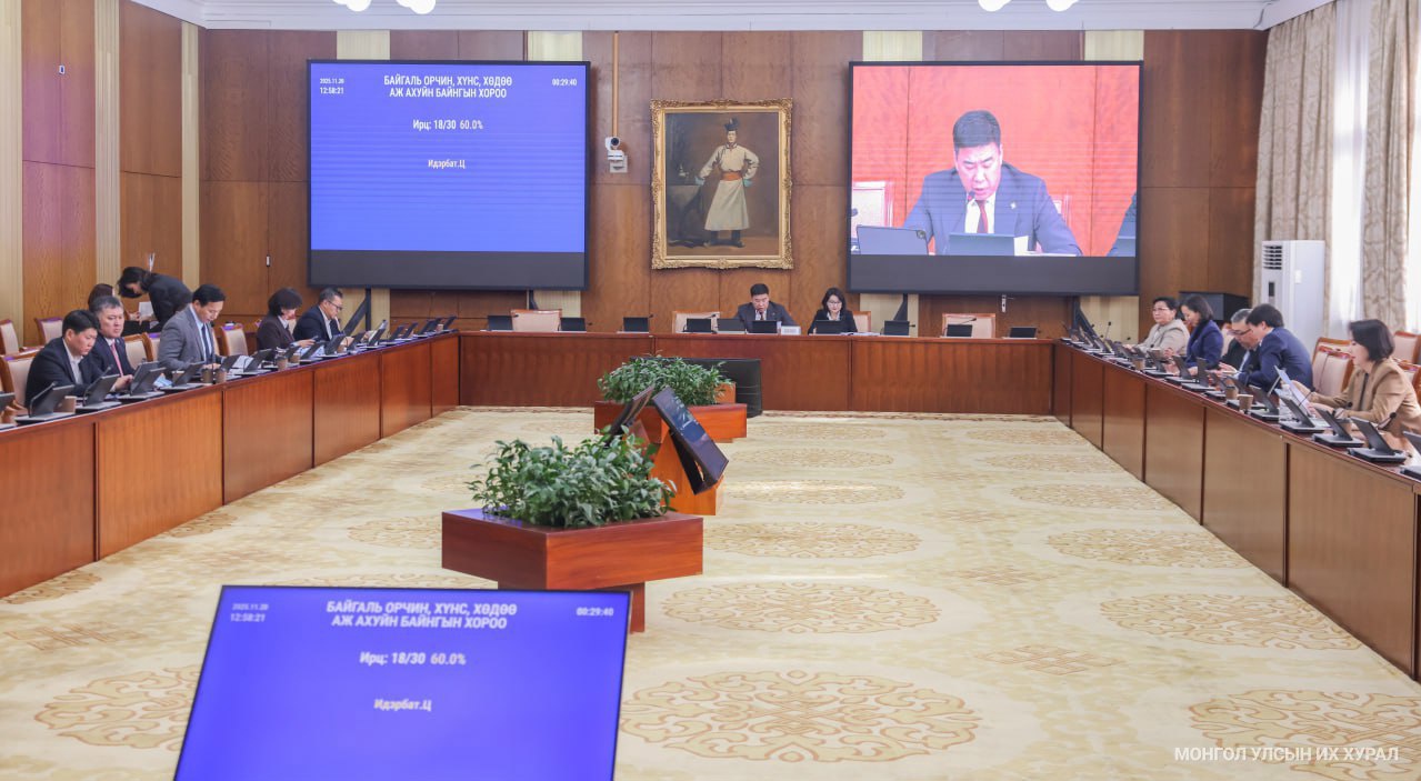 Улсын Их Хурлын Байгаль орчин, хүнс, хөдөө аж ахуйн байнгын хорооны өнөөдрийн /2025.11.20/ хуралдаан 12 цаг 29 минутад эхэлж, хуралдааныг Улсын Их Хурлын гишүүн Ц.Идэрбат даргалав.
