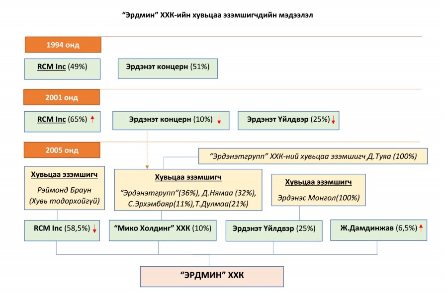 Эрдэнэтийн зэсийн овоолгын хаягдал шороог боловсруулах зорилгоор байгуулагдсан анхны компанийн нэг болох “Эрдмин” ХХК бол Эрдэнэт үйлдвэрийн захирал агсан Ш.Отгонбаатар, Ерөнхийлөгч агсан П.Очирбат нарын анх байгуулсан компани, одоо ч үр хүүхдүүд нь эзэмшиж байгаа компани.