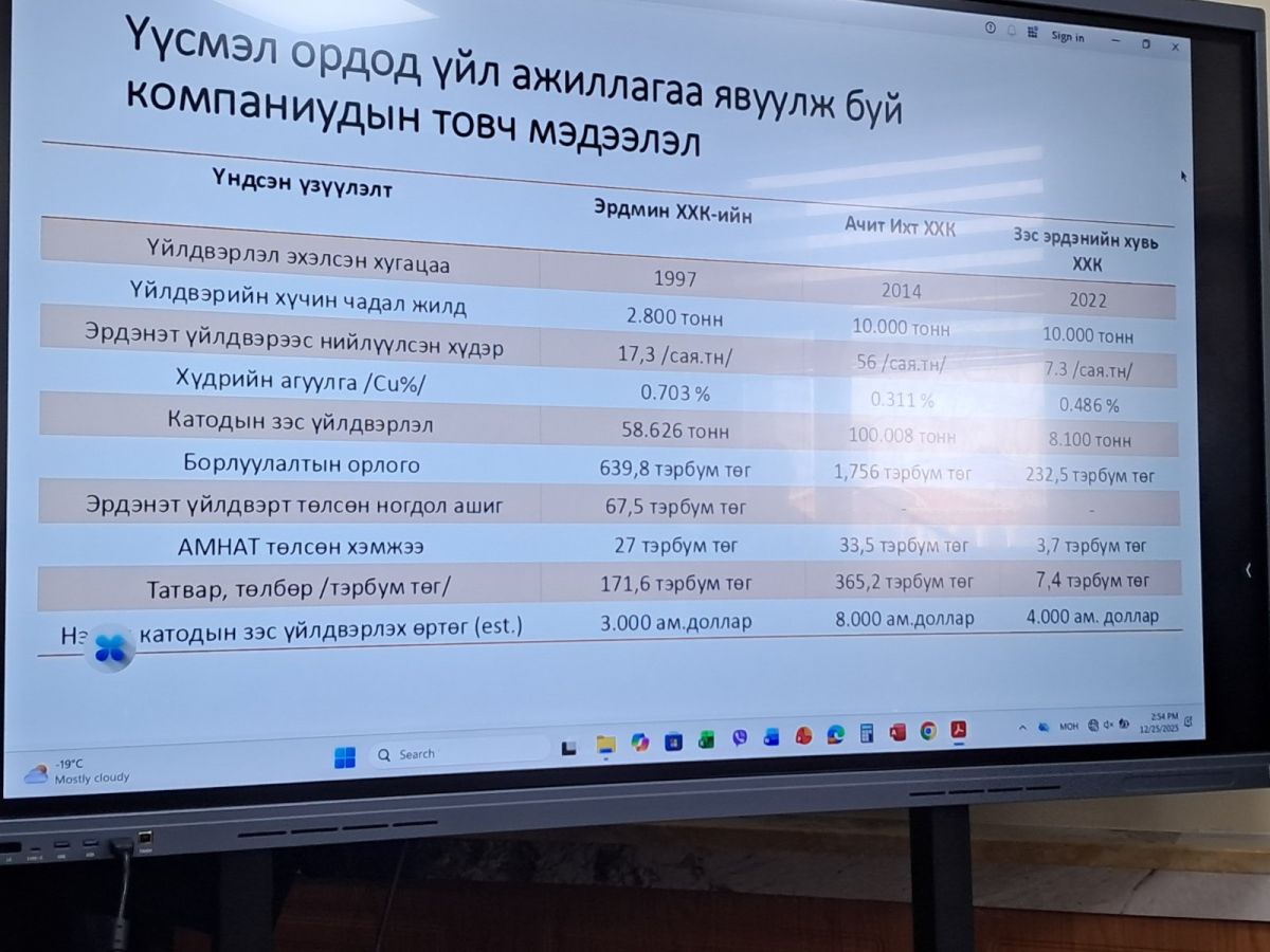 Түүнчлэн уул уурхайн стратегийн 16 ордны мэдээллийг танилцуулж, 2019 оны Үндсэн хуулийн өөрчлөлтөөр байгалийн баялагийн тодорхой хувийг ард түмэн түртэх боломжтой болсон ч харамсалтай нь энэ заалт төдийлөн хэрэгжихгүй байгааг дурьдлаа.
