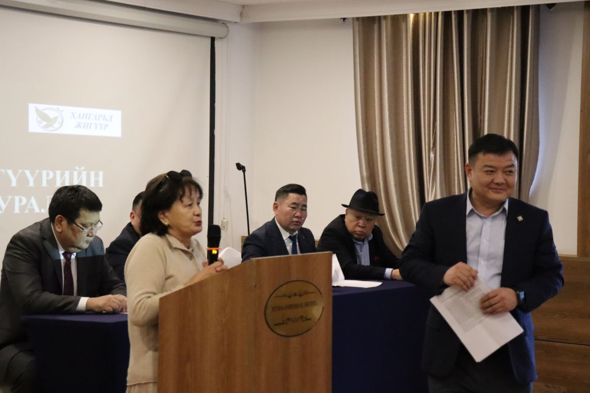 “Хангарьд” жигүүрийн гишүүд индэрт гарч ИЗНН-ын даргын үүргийг гүйцэтгэгч Б.Батбаатар нь УИХ-ын сонгуулиар намын гишүүддээ хандан хэлж байсан үг, үйлдэл нь зөрсөн, ИЗНН нэг хүний засаглалд автсан, намын санхүүжилт шударга бус болсон, өөрт хамаарал бүхий этгээдүүдээр намын удирдах багийг бүрдүүлсэн зэрэг олон санал шүүмжлэлийг хэлж байлаа.
