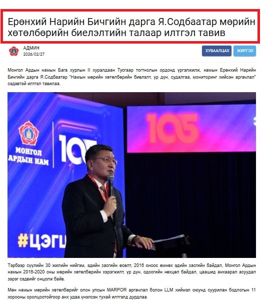 Гэвч МАН-ынхан намын Бага хурлаар сонгуулийн мөрийн хөтөлбөрийнхөө тухай МАН-ын ЕНБД Я.Содбаатар илтгэл тавьсна гэх ч түүнд нь мөрийн хөтөлбөриын хэрэгжилт, гүйцэтгэл, биелэлтийн хувийн тухай тодорхой юу ч ярьсангүй. Худлаа гэвэл Мөрийн хөтөлбөрийн тухай ярьсан мэдээ нь ингэж гарчээ...