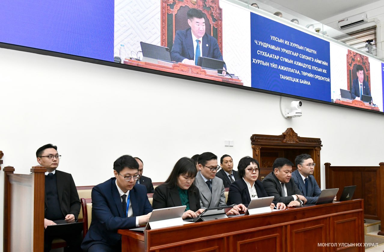Улсын Их Хурлын 2026 оны хаврын ээлжит чуулганы өнөөдрийн (2026.04.10) нэгдсэн хуралдаан Улсын Их Хурлын 71 гишүүн хүрэлцэн ирснээр 56.3 хувийн ирцтэйгээр 10 цаг 01 минутад эхэлж, есөн асуудал хэлэлцэхээр танилцууллаа.