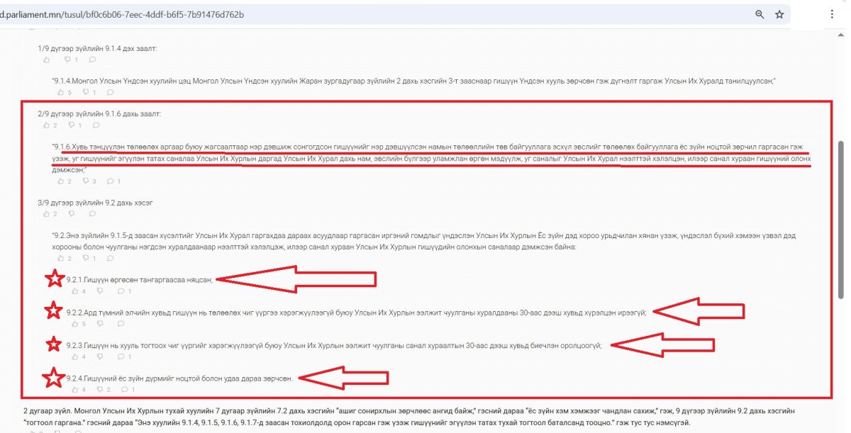 - ямар заалтыг нь дэмжих,